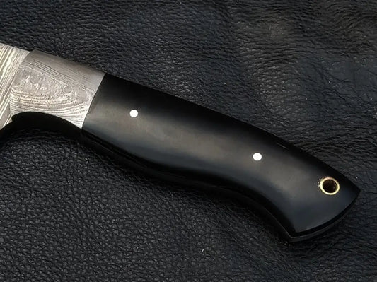 HUNTING KNIFE BLACK HORN HANDLE WITH DAMASCUS STEEL BLADE SA05-B