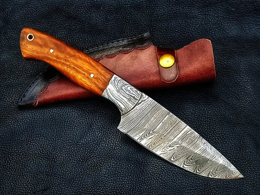 HUNTING KNIFE ROSEWOOD HANDLE WITH DAMASCUS STEEL BLADE SA05-R