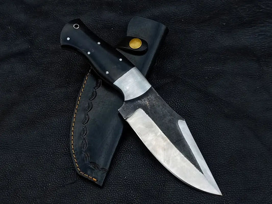 HUNTING KNIFE BLACK HORN HANDLE WITH STAINLESS STEEL BLADE SA116-B