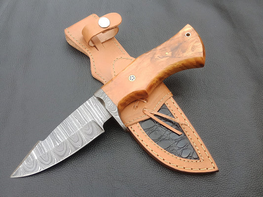 SA-1402 DAMASCUS STEEL SKINING KNIFE- DAMASCUS STEEL BOLSTERS