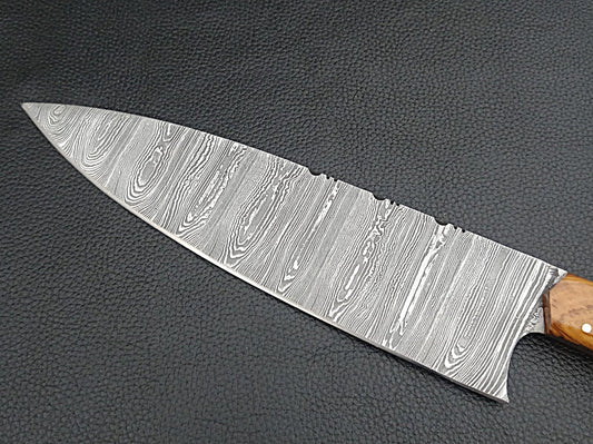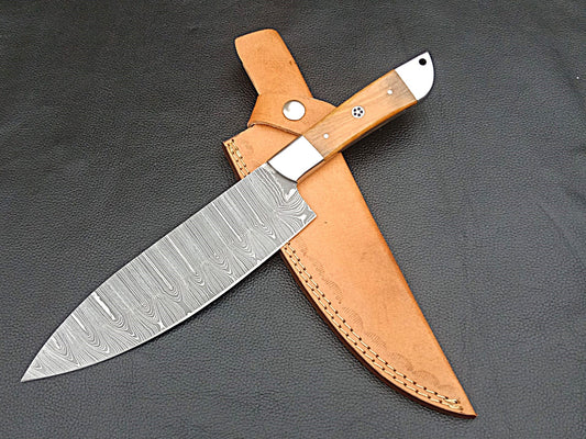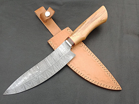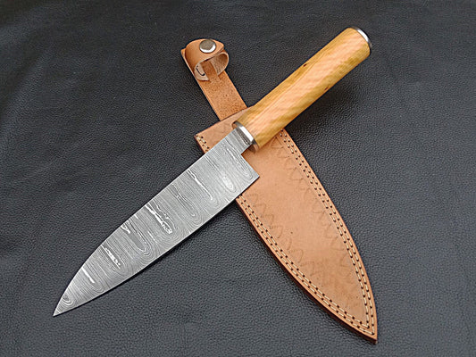 Damascus Steel Kitchen Chef Knife-Olive wood handle-Damascus Bolsters-CK-03