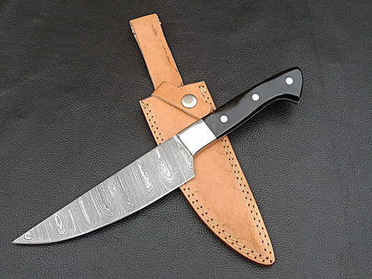 Damascus Steel Kitchen Chef Knife-Black Horn handle-Stainless Steel Bolsters-SA-1269