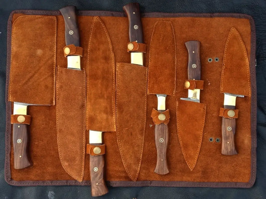 Handmade Damascus Steel Chef’s Kitchen Cutlery Set-SA50- Rosewood Brass