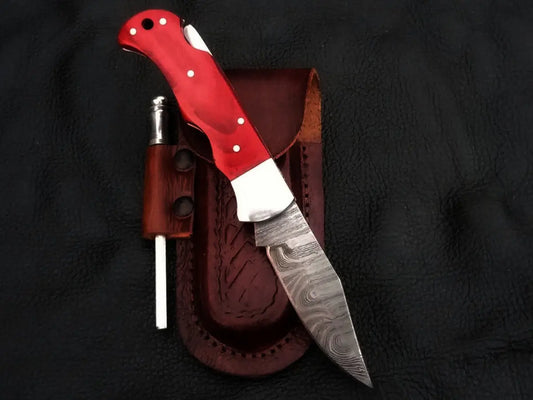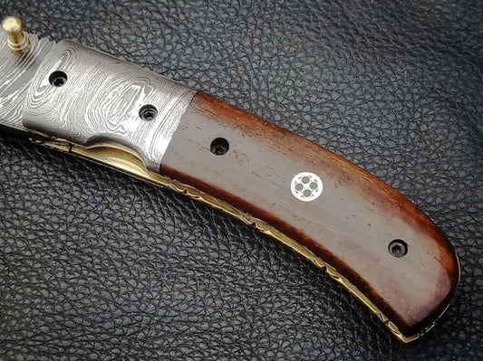 FOLDING KNIFE ROSEWOOD HANDLE WITH DAMASCUS BLADE SA02-R