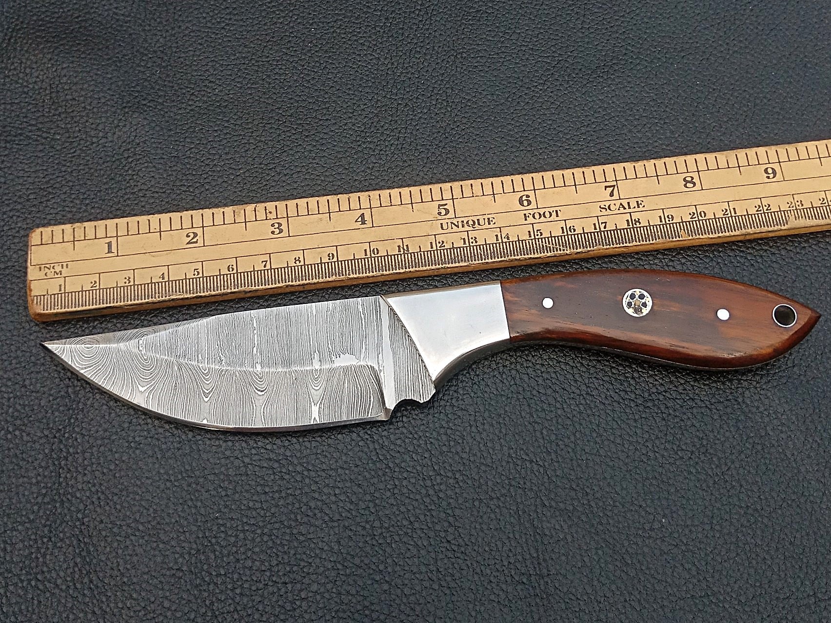 SA-1402 DAMASCUS STEEL SKINING KNIFE- DAMASCUS STEEL BOLSTERS
